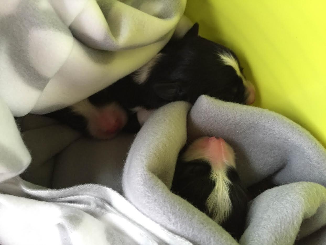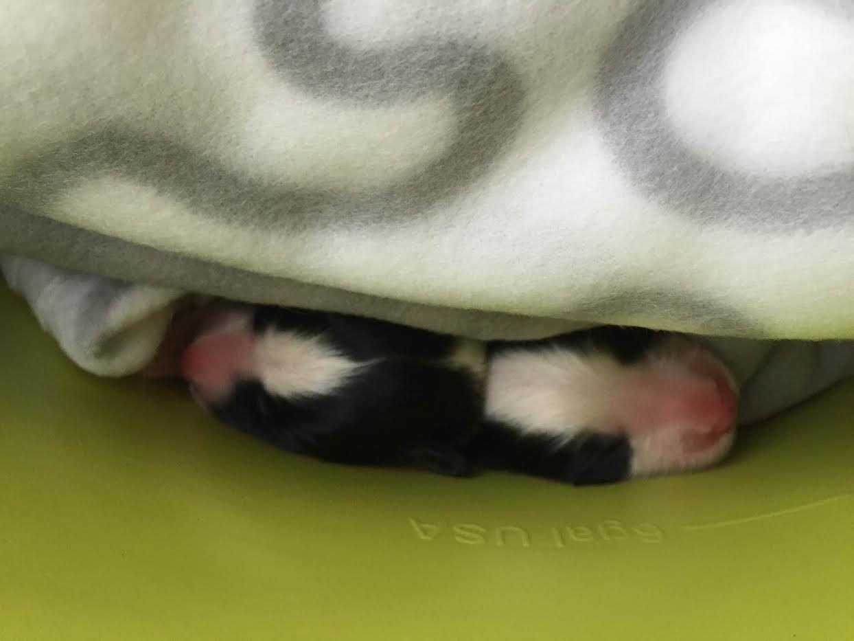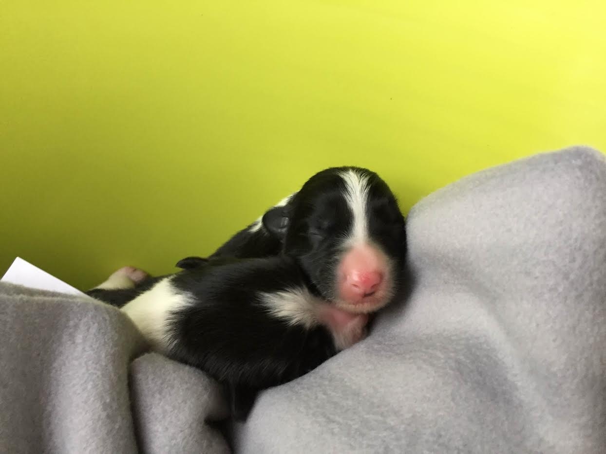 Miután elfolyt a magzatvíz, az első kiskutya sehogy se akart megszületni, úgyhogy elmentünk orvoshoz. Az ultrahangon láttuk, hogy minden rendben a picikkel, így a rendelőben is vártunk még 1-1,5 órát, hátha kibújik, de nem, az orvos végül a császármetszés mellett döntött. Este 10 körül lettek meg a kicsik, 4kan és 1 szuka, egészségesek és gyönyörűek.:)
