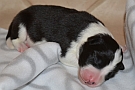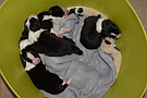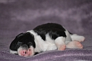 A kislány ma megtalálta az alomláda kijáratát, pedig a szeme még nincs is nyitva. Már teljesen felhúzta magát a peremre és majdnem kint volt, mikor észrevettem. Zora előtte feküdt, talán megérezte, hogy ott van, ezért próbált odajutni hozzá. Kapott a kijárat egy magasítást...