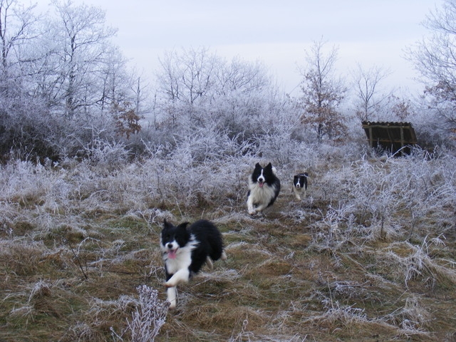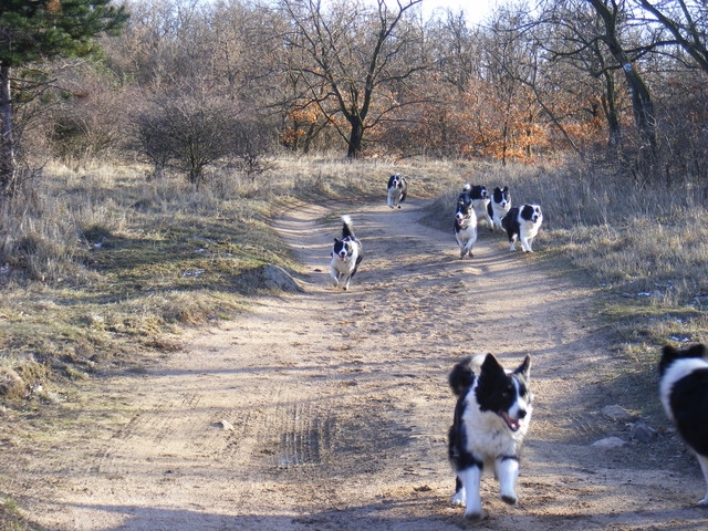Szabadbattyán közelében sétáltunk Grog második almából 2 kicsivel, Fridával (Autumn Moonlight) és Mesével (Angel Face), továbbá Face-ivel, és a gazdákkal. Arra számítottunk, hogy -10 fok és térdig érő hó lesz, ehelyett kellemes idő és hómentes táj fogadott minket. Mesével csak rövid ideig tartottak velünk, mert egy kicsit fel volt fázva. Mielőbbi gyógyulást kívánunk neki!