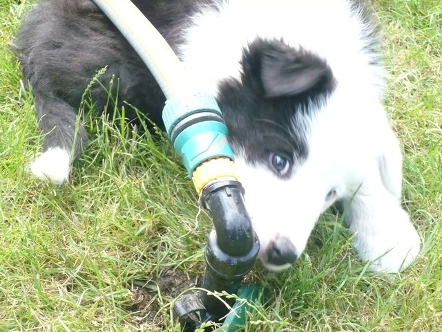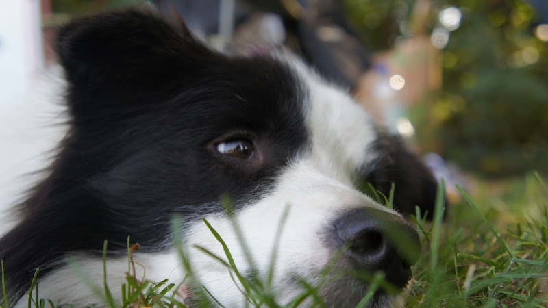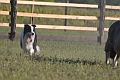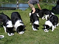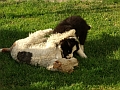 A kicsik 5,5 hónaposak, ez volt az első terelésük és mindketten nagyon ’rákattantak’ a barikra.:) Amikor épp nem ők voltak a nyájnál, akkor fáradhatatlanul gyűrték egymást vagy a labdát szugerálták, hogy mikor dobja már el nekik valaki. Tündéri mindkét lány.