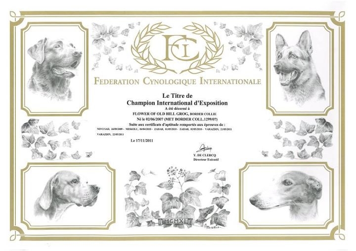 Csehországi klubkiállításon Grog egyik lánya, Orchid's Blossom z Černobílých Kitűnő III., másik lánya, Izi (Over the Rainbow - IZ z Černobílých) pedig Kitűnő minősítést kapott, 10 növendék osztályos szuka közül.